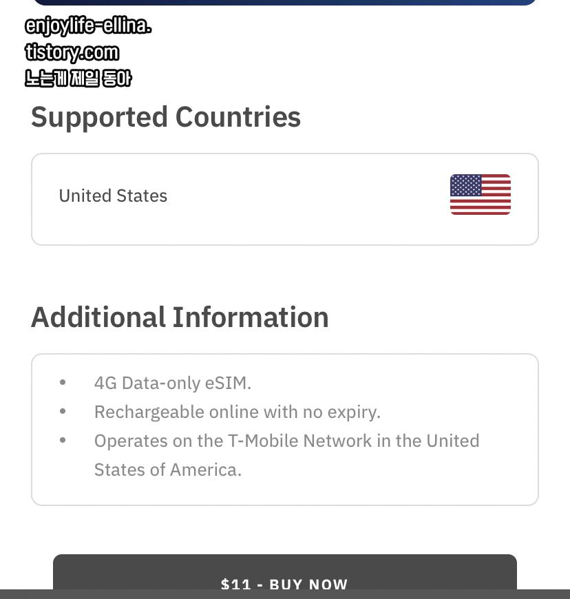 미국 내에서 T-Mobile 네트워크를 이용하고 4G 데이터 사용, 재충전이 가능하다고 해요.