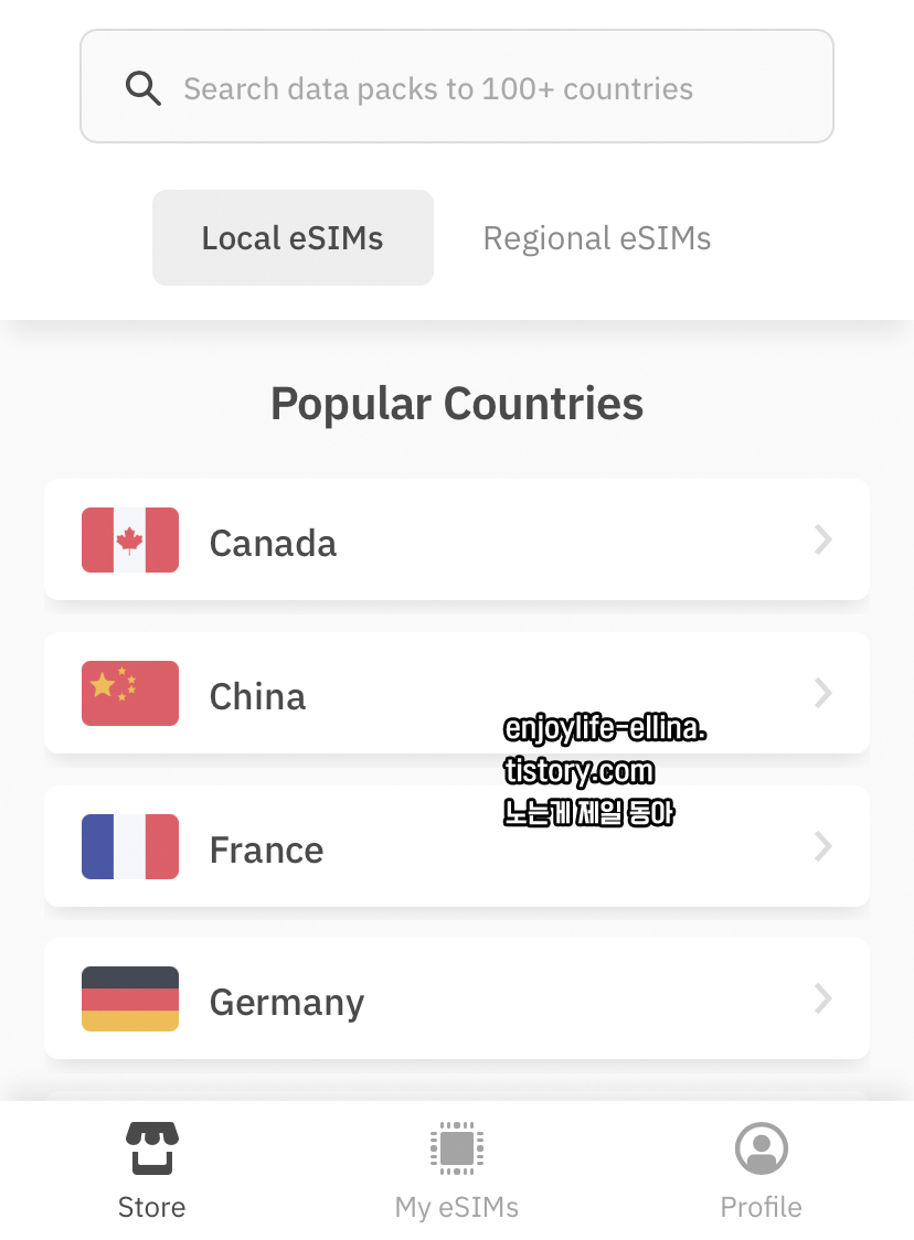 판매하고 있는 여러나라의 eSIM 을 보실 수 있어요.
